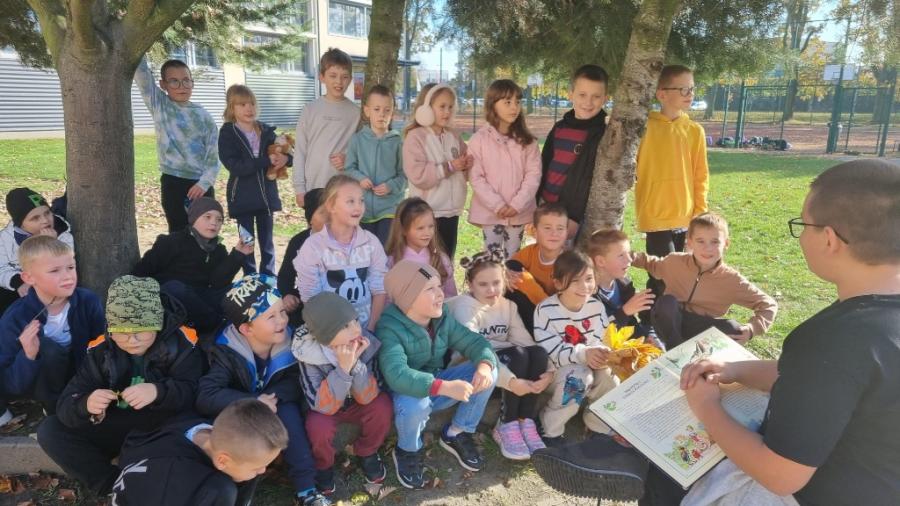 Dzieci słuchają w pełnym skupieniu – czasem w naszej świetlicy, a gdy pogoda dopisuje, nawet na świeżym powietrzu, siedząc wygodnie na trawie.