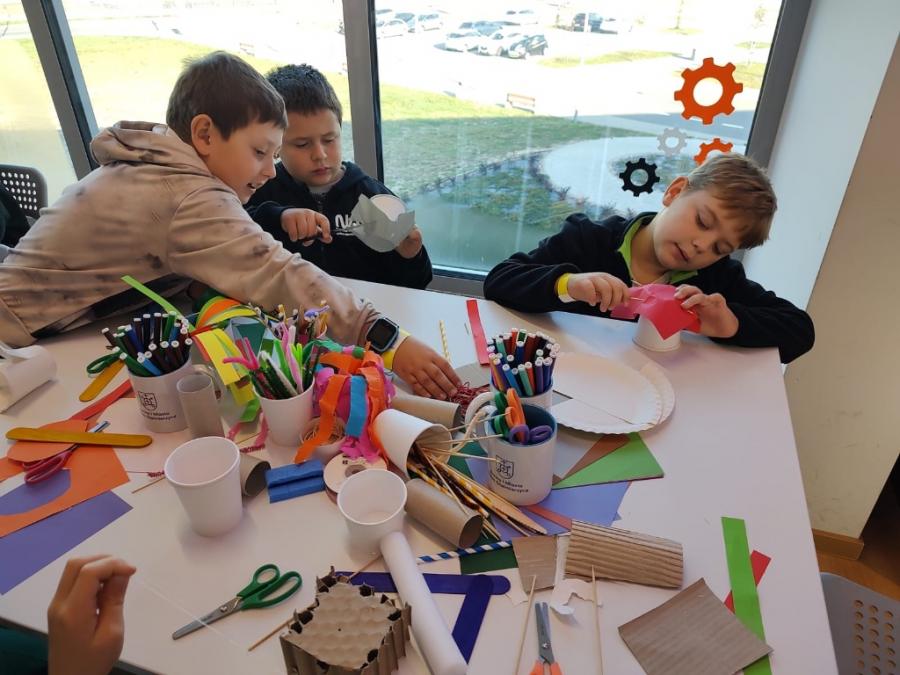 Dzieci z ogromnym zaangażowaniem projektowały, konstruowały i testowały swoje prace, a przy tym świetnie się bawiły.