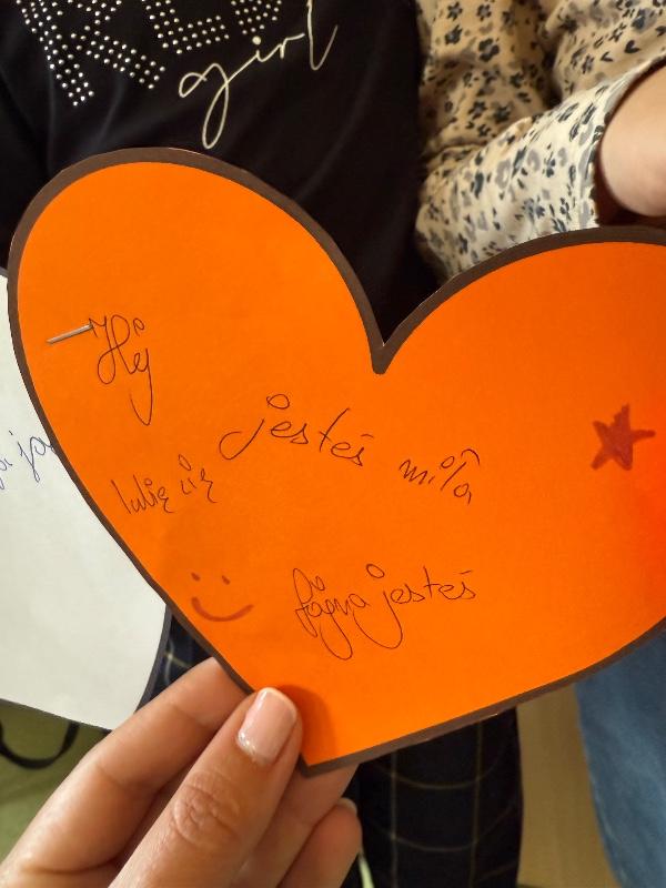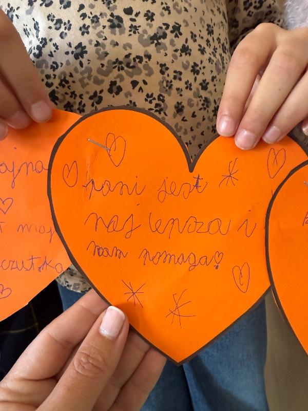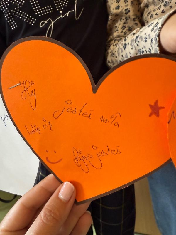 przygotowali serduszka z miłymi słowami, z których powstał Łańcuch Miłych Słów,